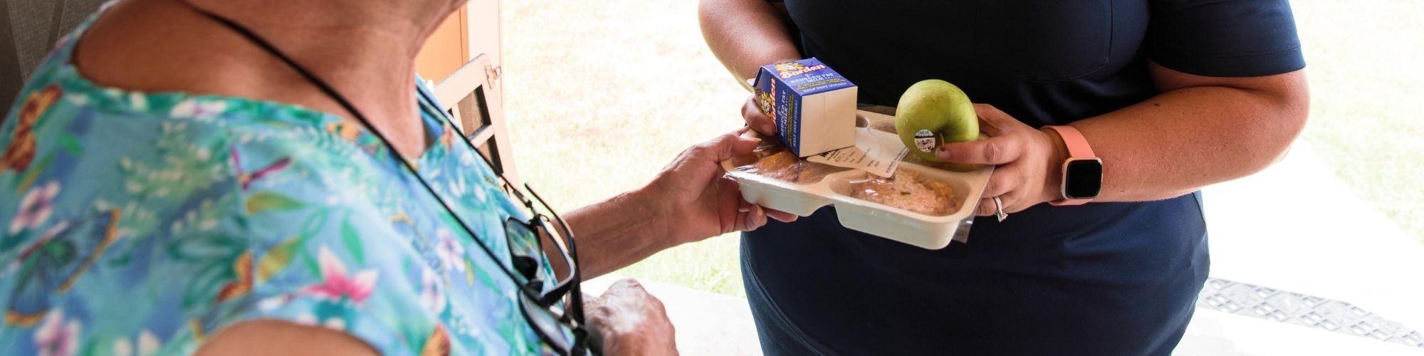 Each meal contains one lean protein, one starch, one vegetable, one fruit or fruit juice, fresh bread, and 2% milk. Meals have no added sugar or salt.